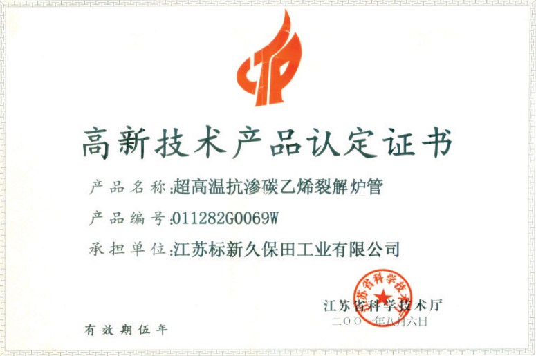 » 高新技术产品----超高温抗渗碳乙烯裂解炉管