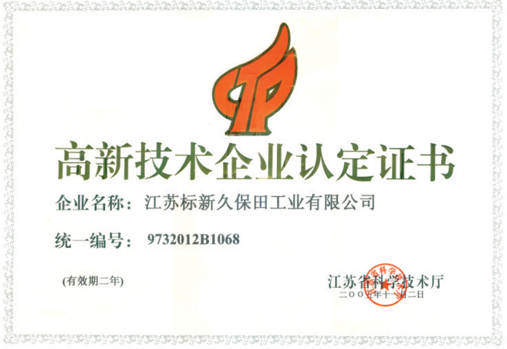 创建日期:2011-05-18 发证机构:江苏省科学技术厅
